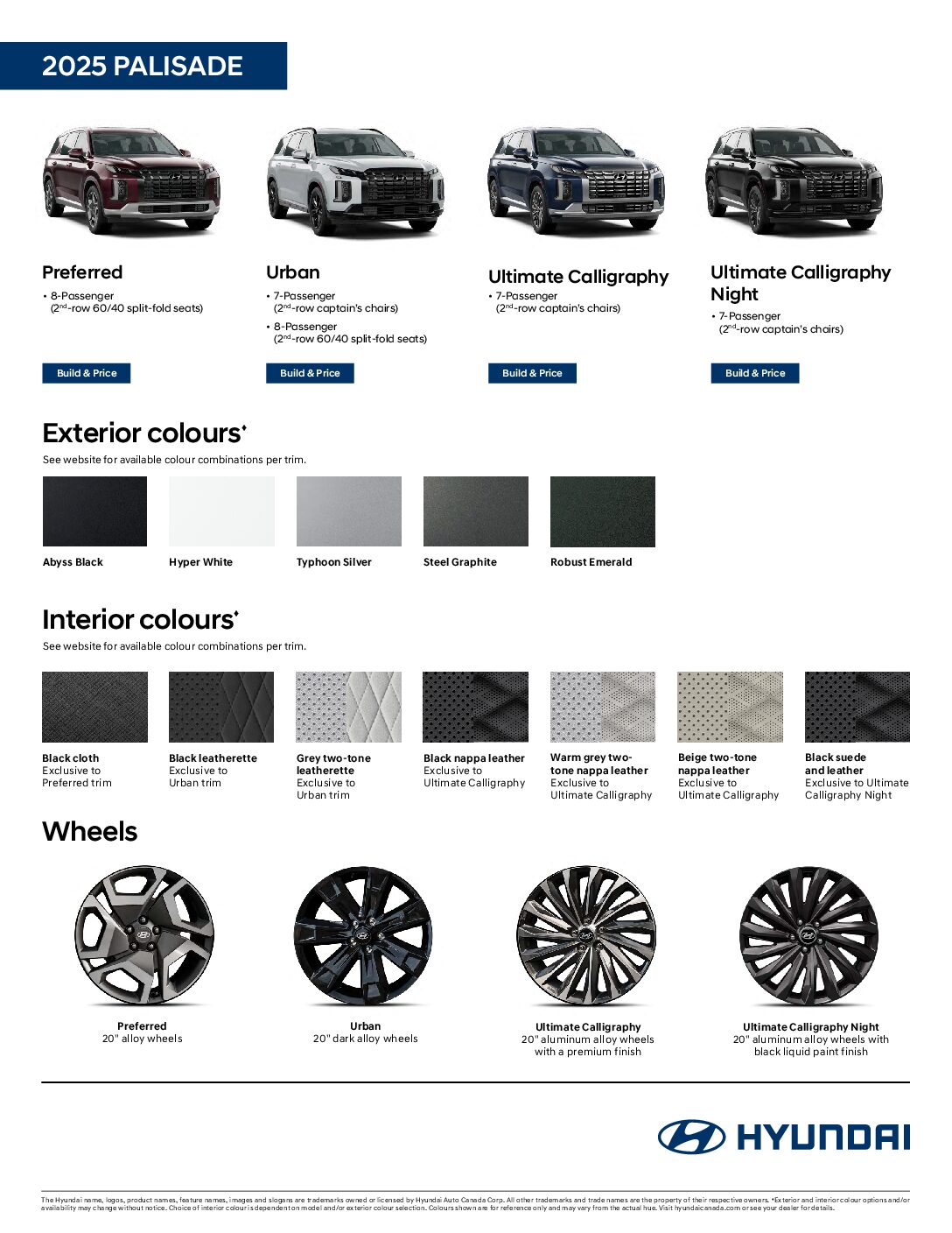 The 2025 PALISADE makes your drive everything you want it to be. With Hyundai’s SmartSense™ safety innovations, sophisticated technology, and contemporary styling, it continues to redefinte the standard of luxury SUVs. And with standard 8-passenger premium seating, it’s everything you and your passengers need in one luxurious package.