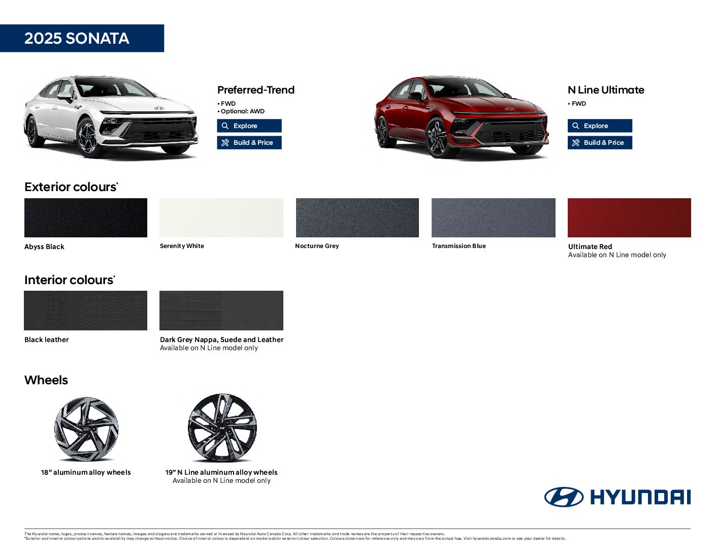 The 2025 SONATA embraces the aggressive curves and sharp lines of a 4-door coupe while delivering a sleek and modern cabin designed around your every need. Surround yourself with advanced technology, like the available 12.3" full digital instrument cluster and a suite of standard and available Hyundai SmartSenseTM safety features.