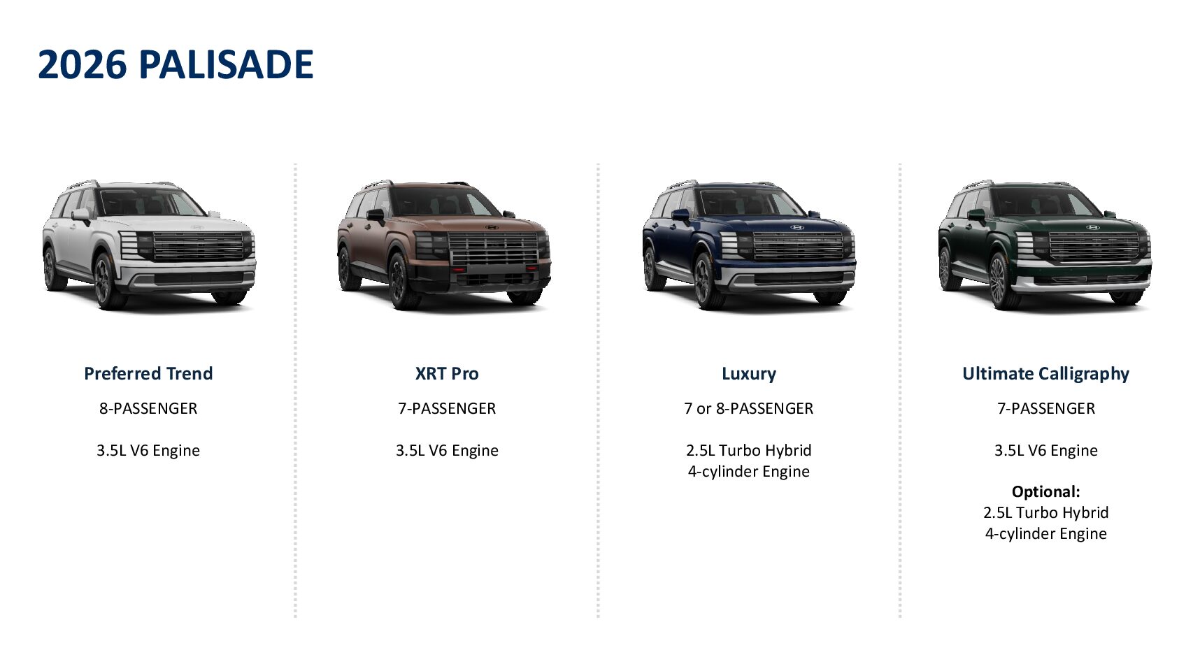The all new PALISADE is the culmination of years of listening, innovating and refining. It is our most beautiful, spacious and versatile full-size SUV, yet.